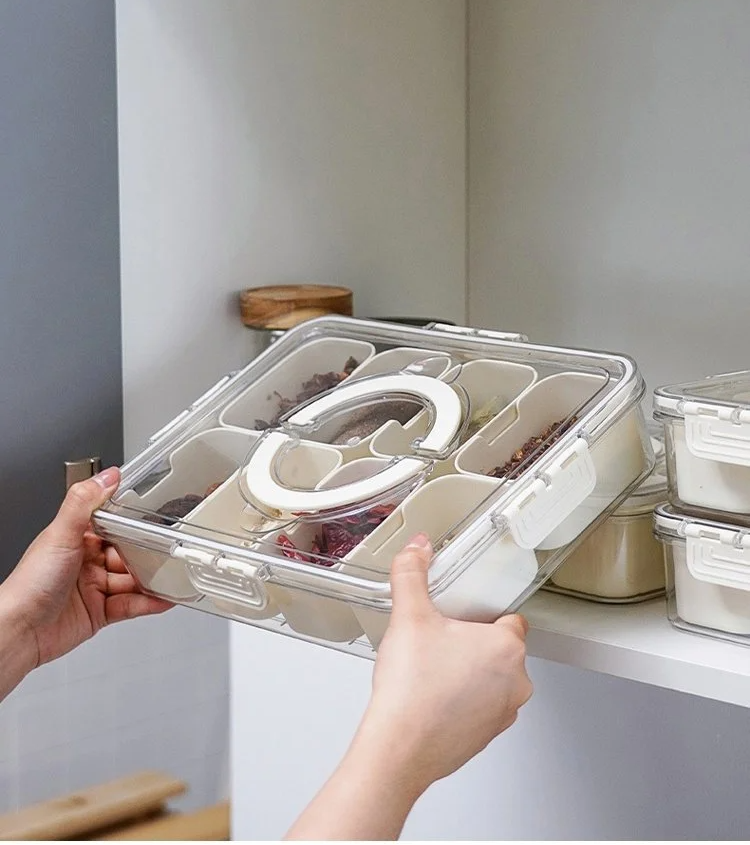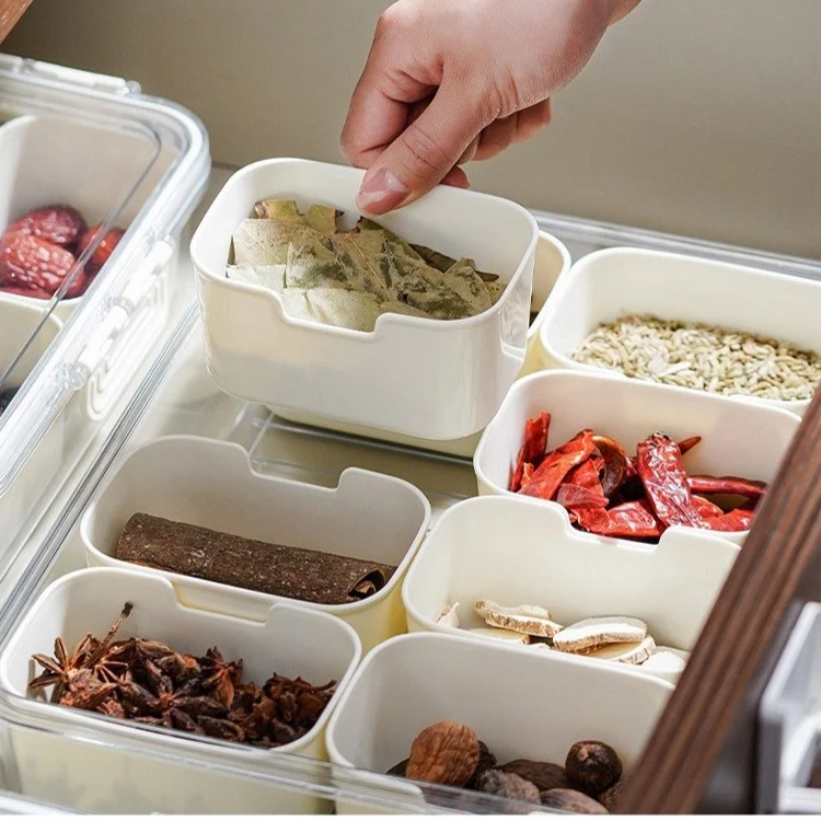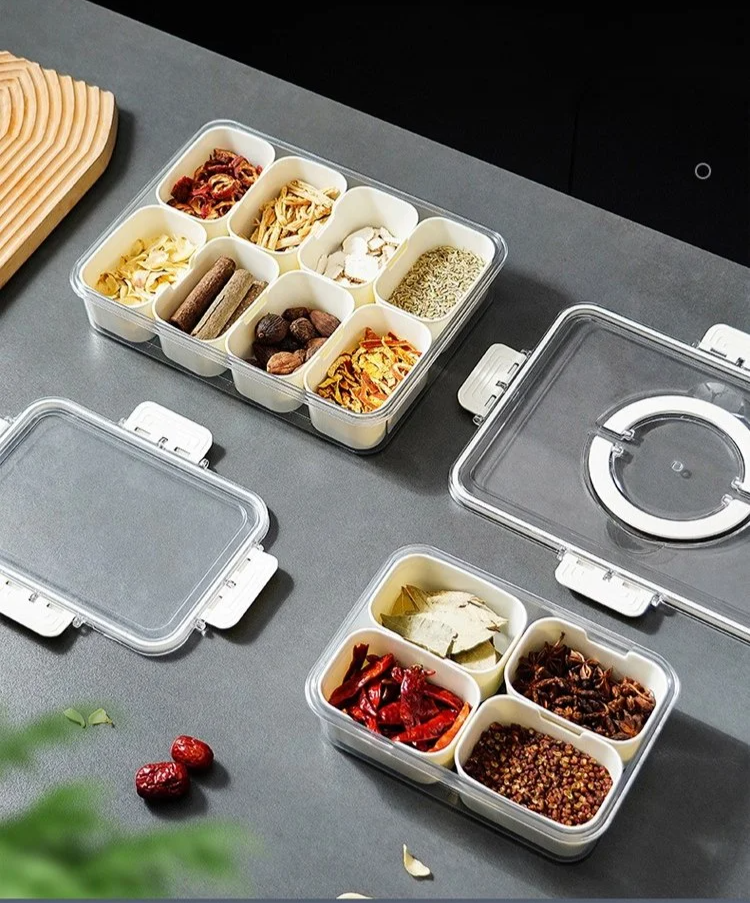 กล่องเก็บเครื่องเทศแบบแบ่งช่อง รักษาความสดใหม่ มีหูหิ้ว