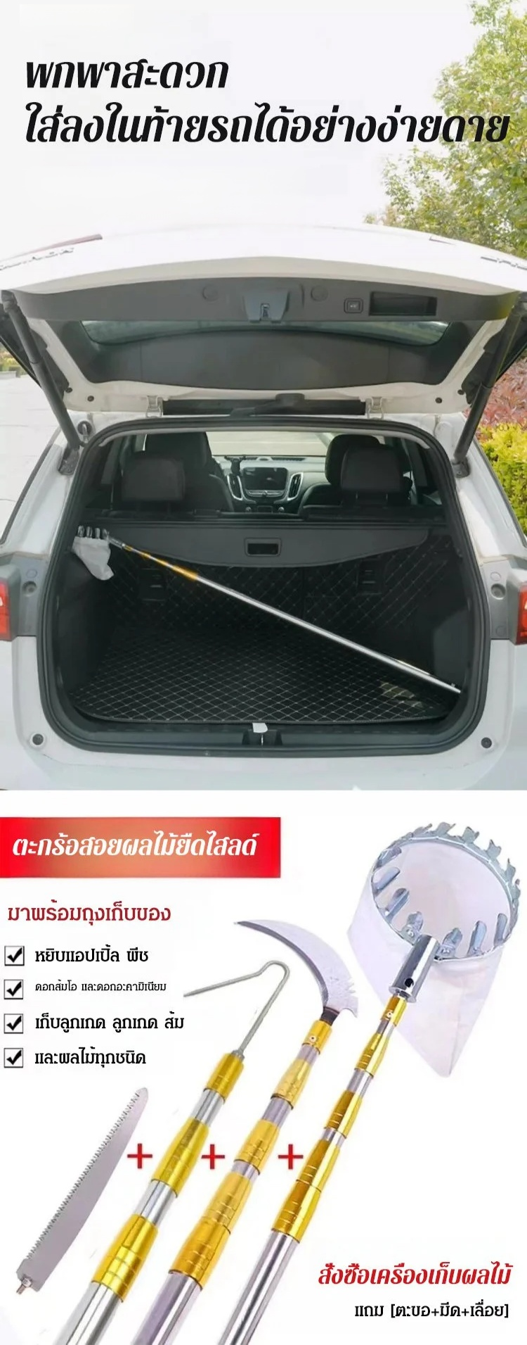 แถม 3 เมตร [เครื่องเก็บผลไม้ + มีด + ตะขอ + เลื่อย]