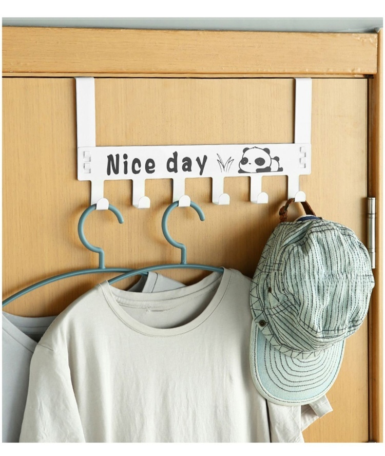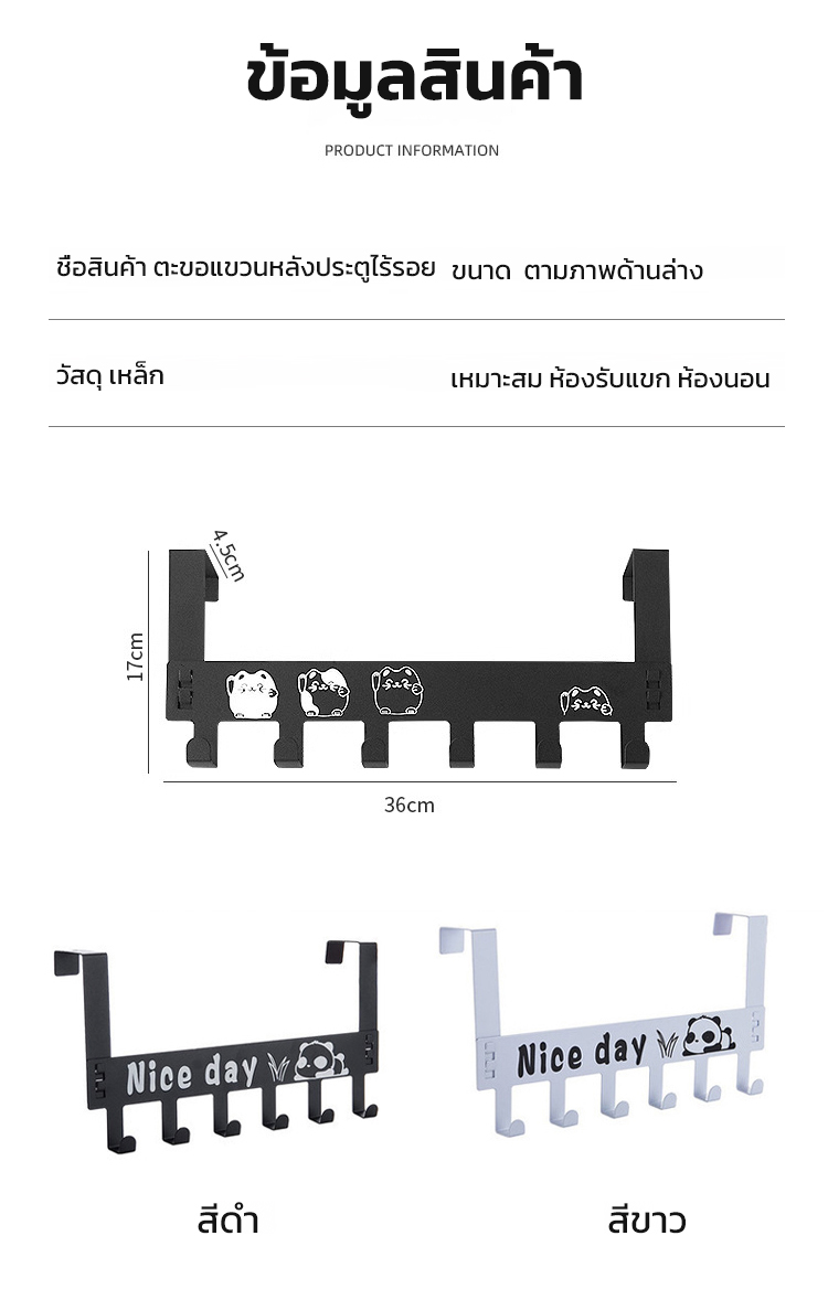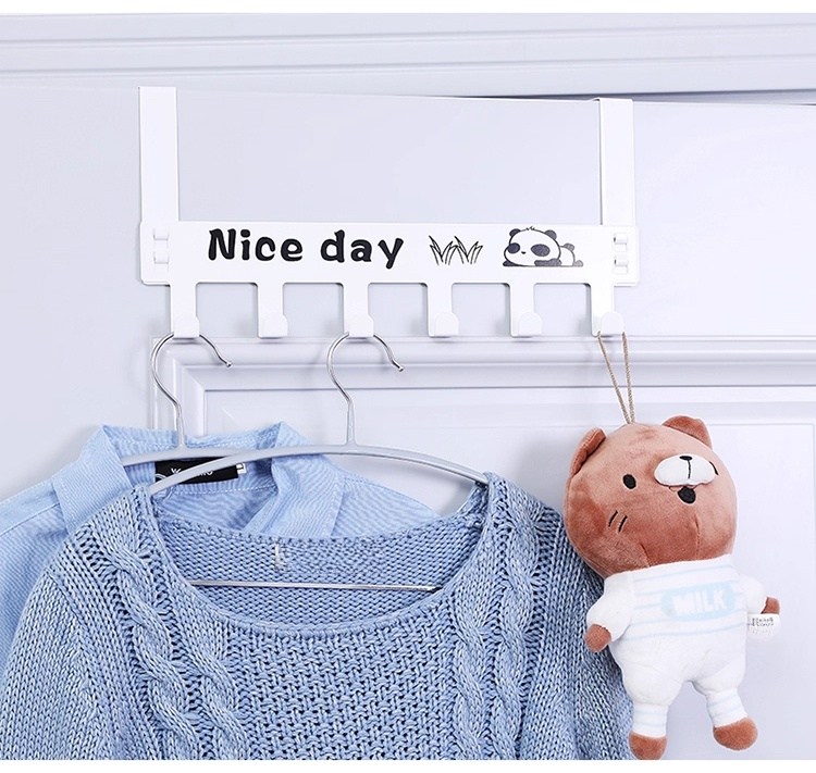 ที่แขวนของเหล็กกล้าคาร์บอนแบบ6ตะขอไม่ต้องเจาะรูสำหรับหลังประตู