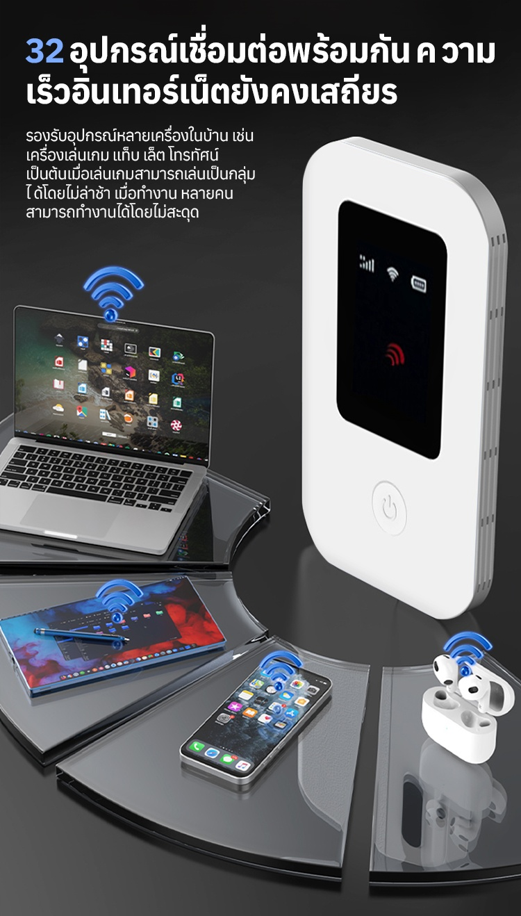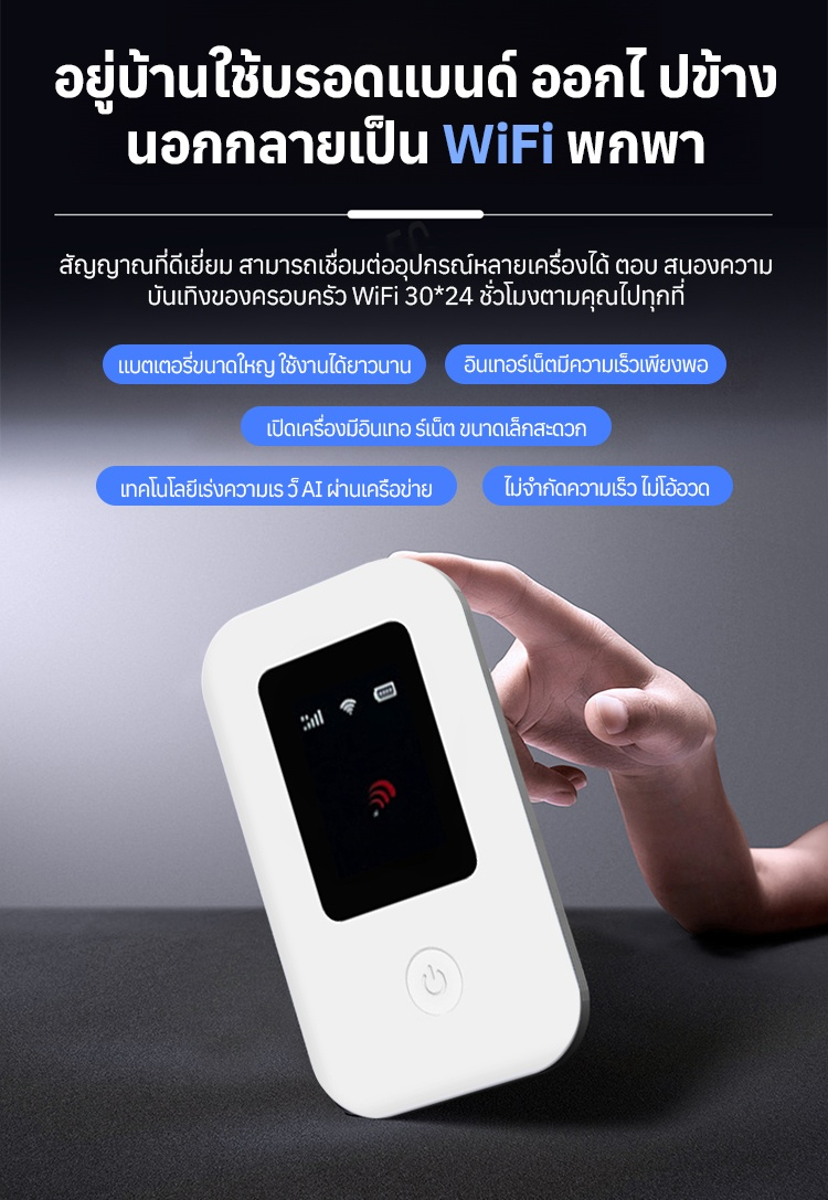 【ไม่มีค่าเช่ารายเดือน ไม่ต้องใส่ซิมการ์ด】WiFi พกพาความเร็วสูง