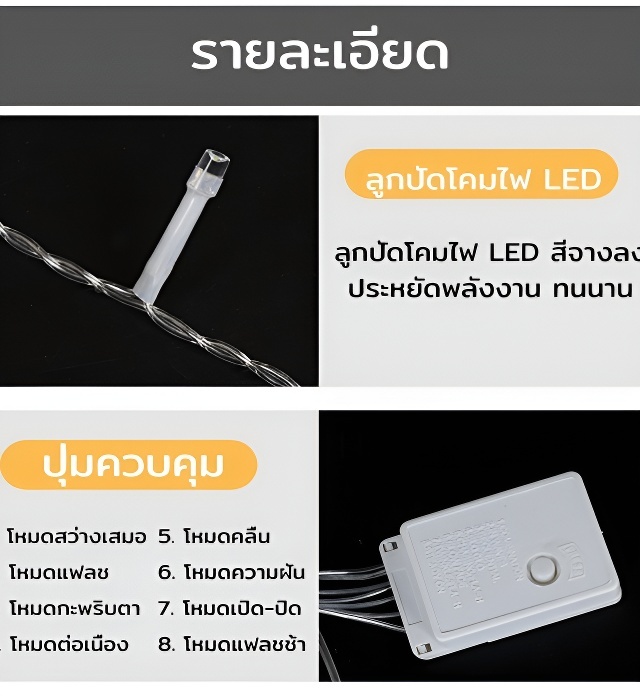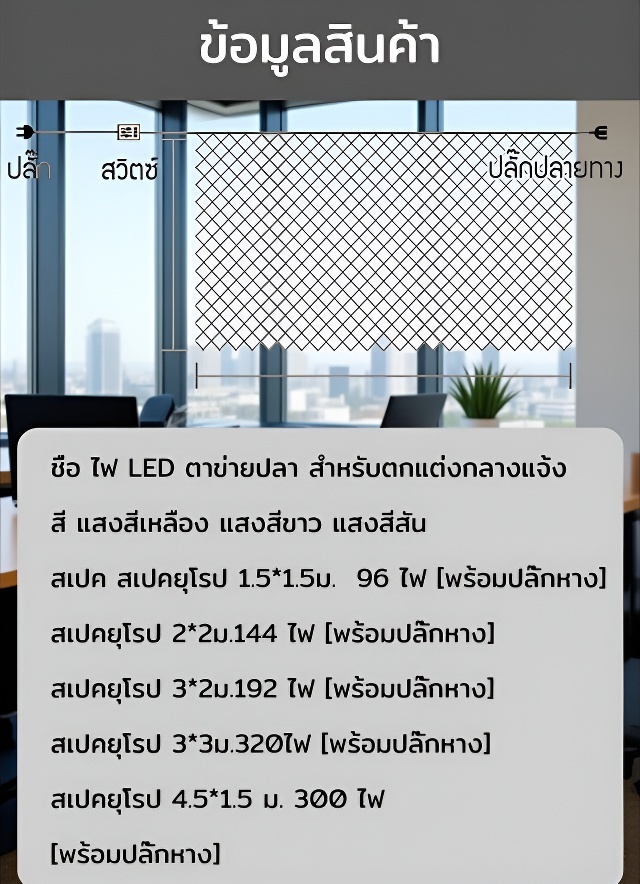 สเปคยุโรป 1.5*1.5ม. 96 ไฟ [พร้อมปลั๊กหาง]